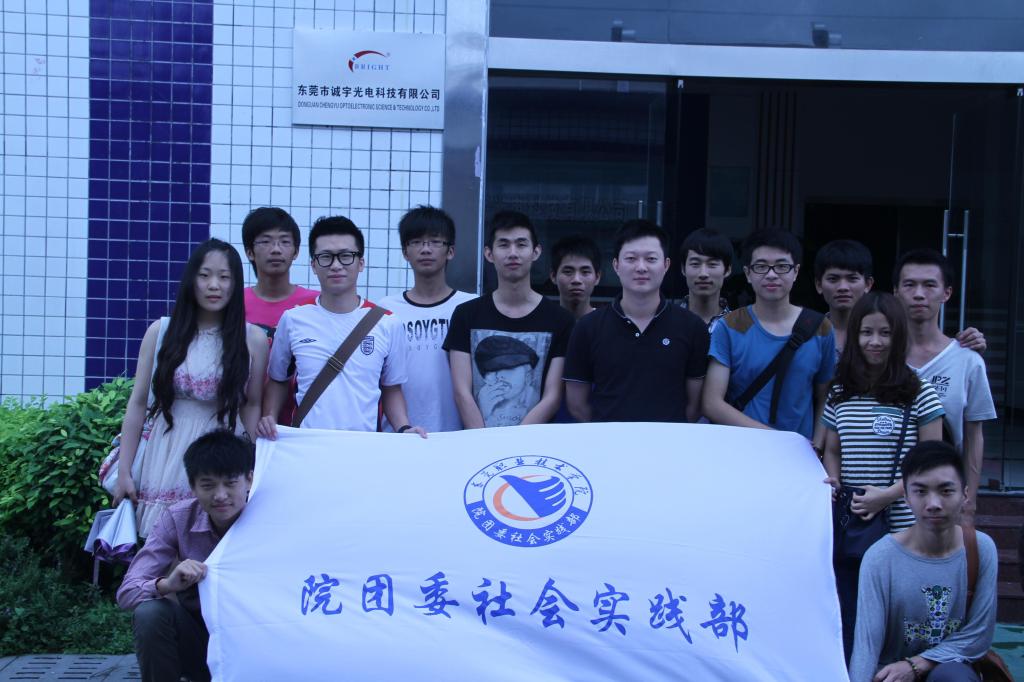 当天早上9点,在院团委社会实践部指导老师陈通达的带领下,我院14名学生代表到达东莞诚宇光电科技有限公司。在行政部罗经理的接待下,东职师生们来到贵公司的接待厅。为了让学生们对公司有进一步的了解,罗经理详细地介绍了公司的历史、各个部门及主要产品。该公司建于2006年,专业生产各类彩色及黑白背光源,拥有多名专业技术人员。