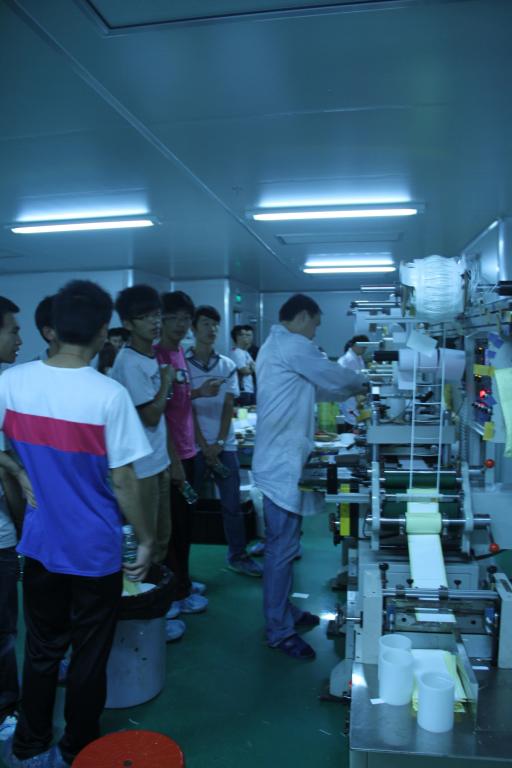 在学生们清楚了解到该公司的历史和运作后,罗经理带领我们参观公司。首先,我们来到研发部,专业技术人员向学生们展示了他们的主要产品,并接通电路做产品演示。接着,我们参观了打包及成品房、生产线、模切车间等。在参观过程中,学生们积极提出疑问,罗经理都耐心地一一为他们作答,让学生们了解相关设备的操作和专业技巧的学习。