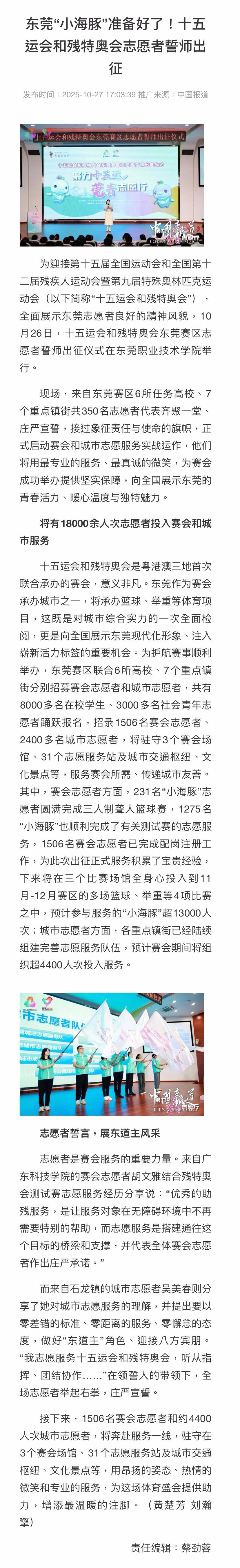东莞“小海豚”准备好了!十五运会和残特奥会志愿者誓师出征