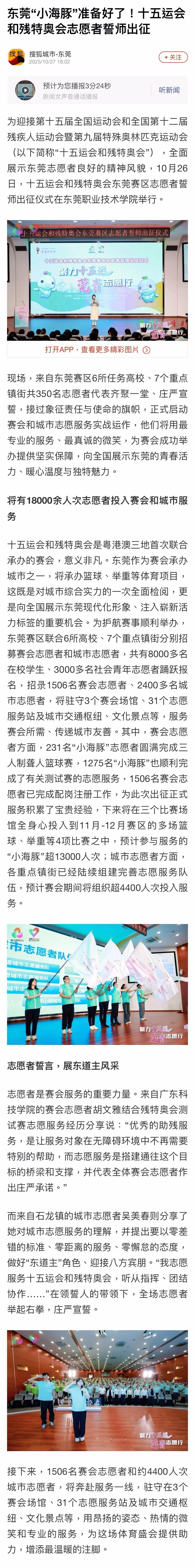 东莞“小海豚”准备好了!十五运会和残特奥会志愿者誓师出征