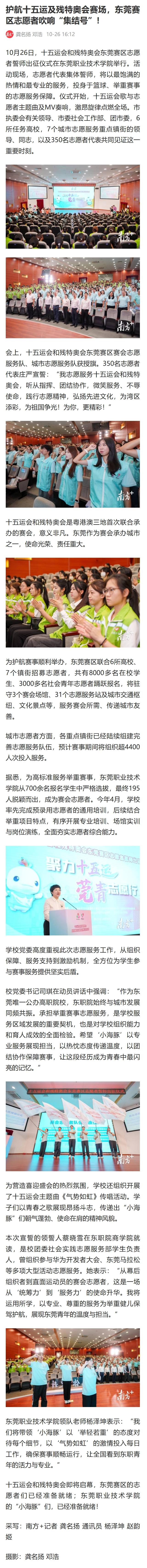 护航⼗五运及残特奥会赛场,东莞赛区志愿者吹响“集结 号”!