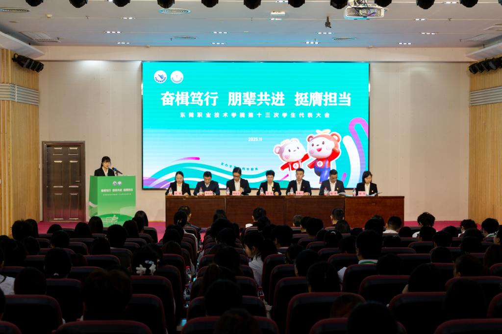 大会以“奋楫笃行 朋辈共进 挺膺担当”为主题。开幕式上,校党委书记司琪发表讲话,她充分肯定了过去一年学生会的工作成果,包括红色文化传播、社会实践、志愿服务及校园文化建设等方面的亮眼表现,如“粤青春·井冈情”实践队入选全国优秀成果、东职学子投身十五运会志愿服务等。她指出,学生代表是学校建设发展的见证者、参与者和推动者,肩负重任。并对学生会提出三点希望:筑牢信仰之基,传承红色基因;践行服务之本,成为同学贴心人;勇担时代之责,助力东莞发展,争做生力军,共同谱写无愧于时代的青春篇章。