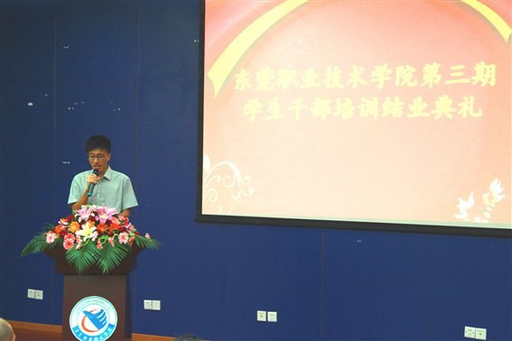 2012年7月3日下午,我院第三期学生干部培训班结业典礼在学生活动中心多媒体报告厅隆重举行,学院副院长李奎山教授、学生处负责人余忠信老师、院团委书记王博及团委其他老师出席了结业典礼。