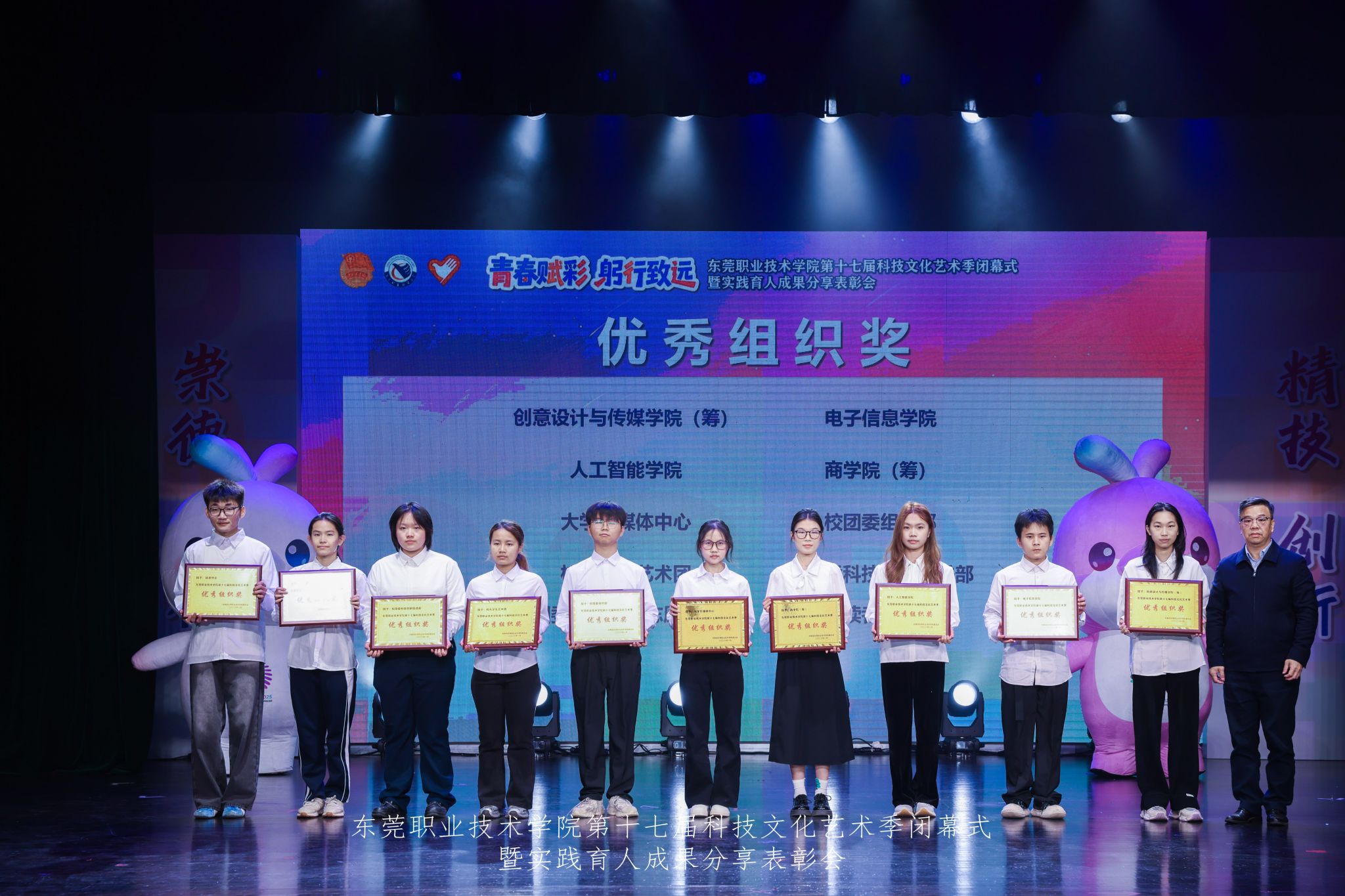 本届科技文化艺术季以“打造东职文化新IP”为核心,全年推出140余项活动,覆盖“挑战杯”、社团文化节、校园十大歌手大赛、夺宝奇兵竞赛、工商模拟市场等多领域。本次大会集中表彰优秀单位10个、优秀作品10个、我最喜爱的十大校园文化活动10个、优秀个人90名。充分展现了学校在推动科技、文化、艺术融合育人方面的扎实成果。这些活动不仅营造了积极向上的校园文化氛围,也真正成为一张彰显东职特色的校园文化亮丽名片。