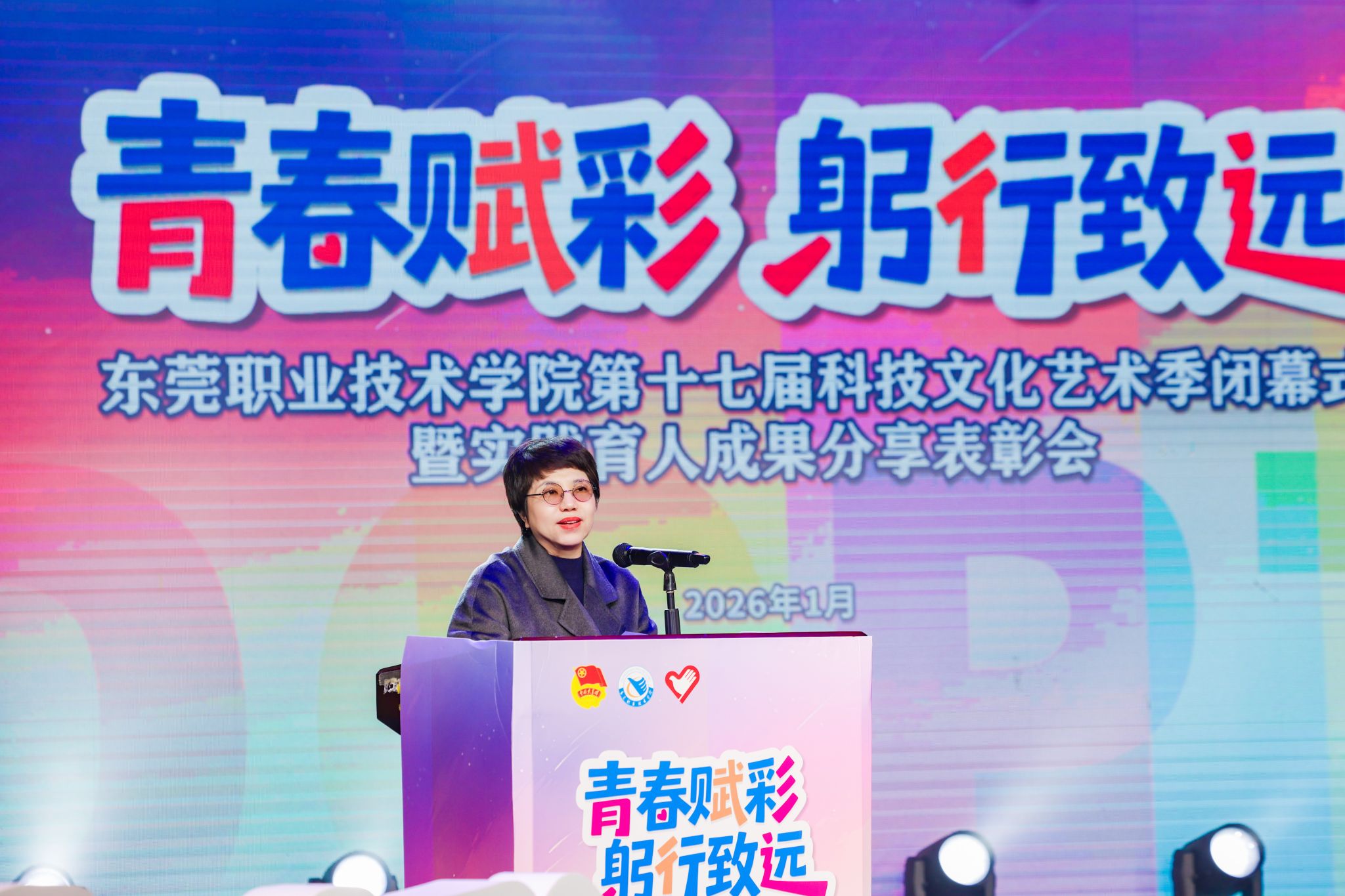 闭幕式上,十五运会志愿者代表分享了服务中的感人故事,校大学生艺术团则以一场迎新年舞蹈专场演出,展现了东职学子的蓬勃朝气。校党委书记司琪在总结中强调:“职业教育的意义,正是让学生将所学用于服务社会、帮助他人。这场活动是共青团工作引领青年、服务大局的生动写照。”她寄语全体同学:一是永葆探索之心,在科技实践与文化传承中筑牢成才基石;二是勇担青春之责,在社会服务与“自找苦吃”中砥砺强国之志;三是汇聚奋进之力,在知行合一与团结互助中共筑东职梦想,将个人成长融入国家发展的时代洪流。