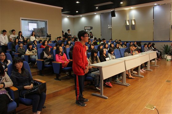 贺定修院长亲切地为现场同学们解读了他心中的幸福大学生活四要素,紧紧围绕“安全、健康、友谊、学业”四个要素与同学们分享了自己认识及经历。在此之前,院学生会的同学们在校园里随机采访了众多的东职师生,收集了他们对“幸福大学生活四要素”的理解和看法,东职师生们各抒己见,通过视频短片与现场的观众一起分享。在特邀嘉宾发言环节,院团委王博书记表示,奋斗的青春最美丽,希望同学们在大学期间积极参加校园文体活动,多认识朋友,多开阔视野,努力提升自己各方面的综合素质;李浩泉处长则用“三个思考”来诠释幸福的定义;王毅副教授分享自己幸福大学生活的回忆;王浩丰老师则讲述了自己大学的成长经历,希望大家要树立人生目标,不断奋斗。漫谈现场轻松愉悦,同学们与嘉宾们相谈甚欢,不时传来一阵阵赞同的掌声。