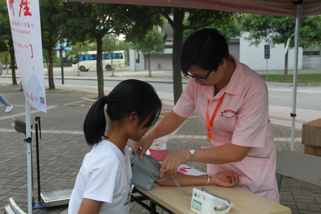 今天下午各位志愿者们早早地到达一饭门口准备物资,在简单的培训与分配工作后,活动17:30准时开始。活动现场人山人海,叶医生耐心的为各位学生解答疑惑,并宣传了有关献血的小知识,同学们认真倾听者叶老师的解答。另外叶医生为有需要的同学测量了体重和血压,使同学们更加了解自己的身体状况。