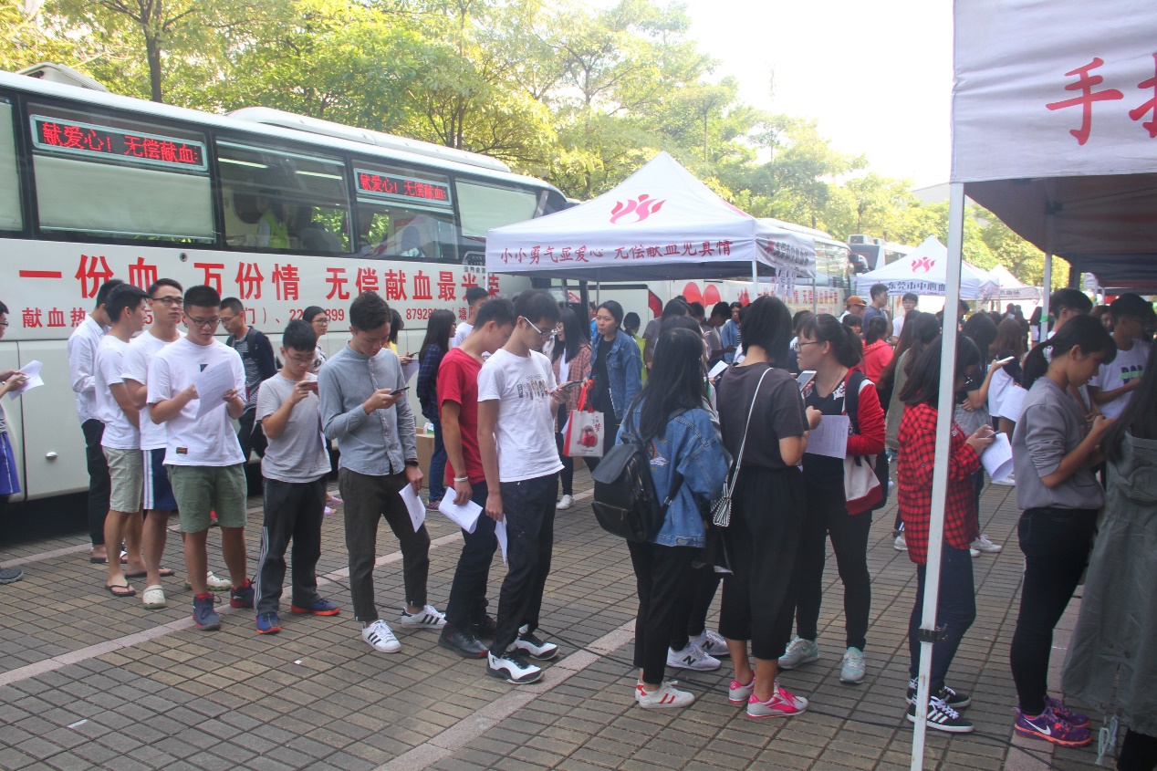 “一份血,万份情”带着这份情,从2017年10月31日开始,到11月2日在第二教学楼后面的空地,我院志愿服务中心与东莞市中心血站合作开展了为期三天的无偿献血志愿活动。此次无偿献血活动吸引了我院广大师生踊跃参与,共有1382位师生献血成功,并且献血量有416500毫升之多。