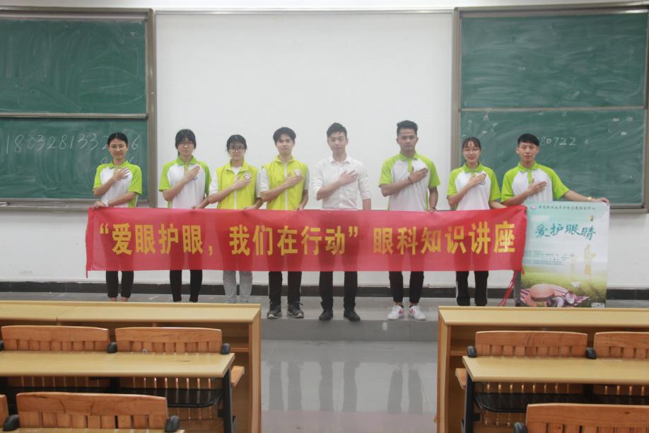 为了加强我院学生对用眼知识的了解,认识各种眼科常见病,增强自身爱眼意识,院志愿服务中心于2018年3月28日中午于一饭门口进行了“爱眼护眼,我们在行动”摆摊宣传活动,下午两点我们有幸邀请到彭老师于教二113开展一个生动有趣的眼科知识讲座。