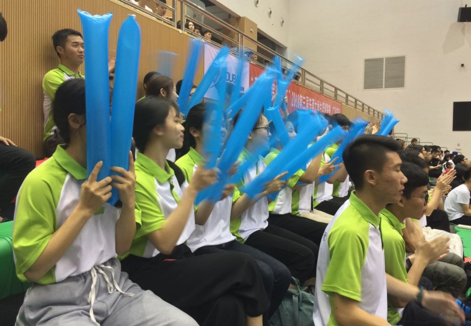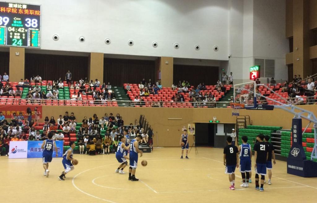 下午16点30分,志愿者在体育馆里集合听从负责人的安排后与比赛人员一起到达比赛场地。在比赛开始的前一小时,双方队员准备着赛前热身,志愿者们也在旁边准备加油棒。晚上19点整,比赛正式开始,我校的篮球队首先以一球完美的三分球打开了序幕,志愿者的士气瞬间被激发出来。比赛非常激烈,虽然我方作为客场,在加油助威人数方面处于劣势,但这也无法阻挡志愿者们的威力,他们尽心尽力地为球员呐喊,为他们鼓掌加油到最后的一秒。最后广科学院以4分之差险胜东莞职院。
