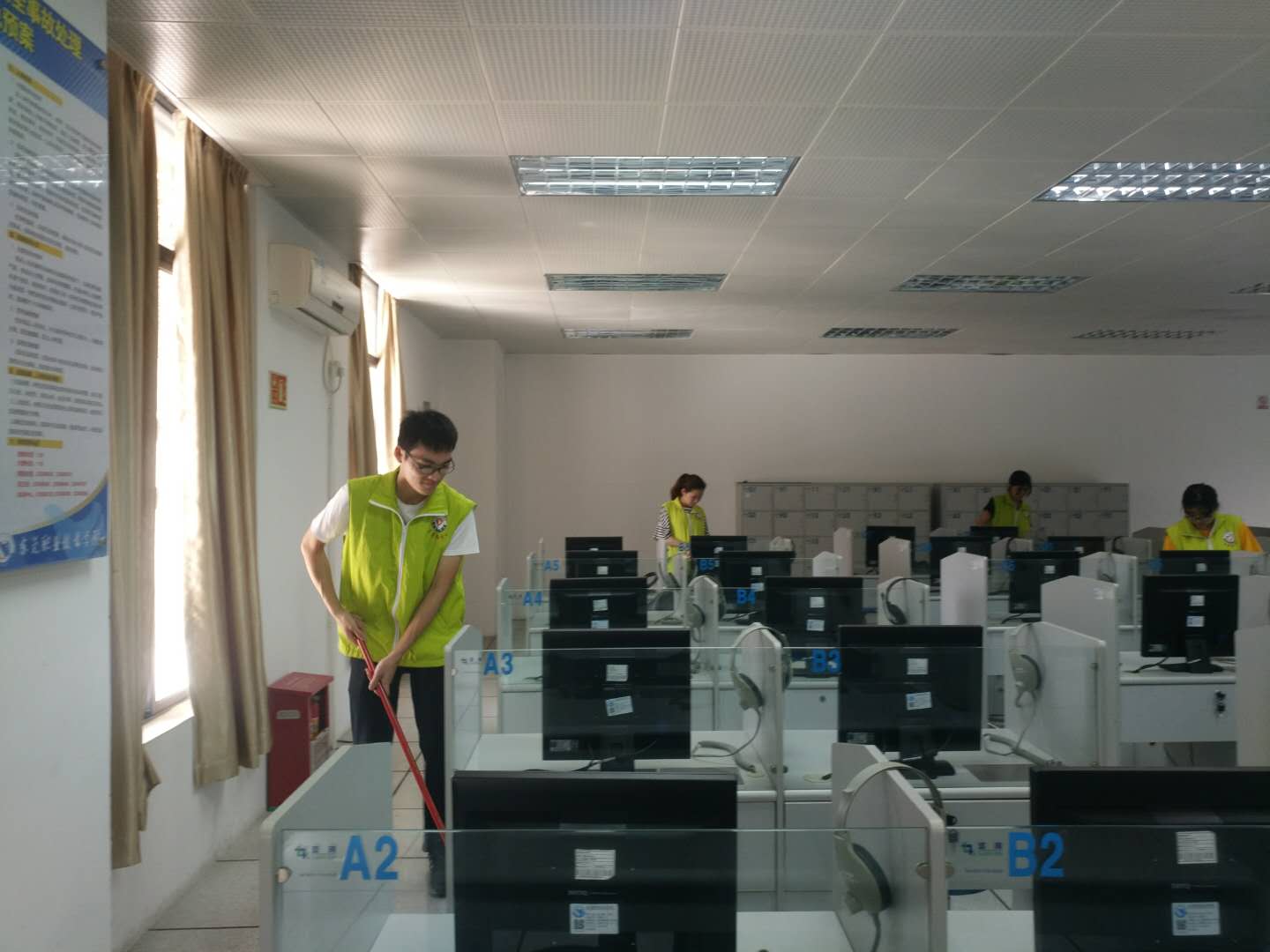 活动开始的前一天,负责人对参与活动的志愿者进行录入清洁工作培训,告诉大家活动期间的一些注意事项。当天下午天气虽然炎热,但是志愿者们准时在8D门口集合完毕,在负责人的指挥下分好组,分配好物资后志愿者们便上楼开始了清洁工作。在每个机房,都能看到志愿者们在细心地擦拭显示器、桌面,耐心清扫着机房各个角落。