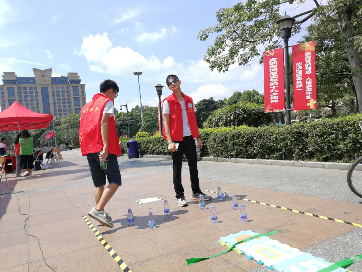 上午8点半,志愿者们到达大岭山广场,协助工作人员布置场地,志愿者们都各司其职。其中活动现场专门设有了咨询区、义诊区、就业指导区、游戏区等等可方便群众进行询问。一切准备就绪后,在主持人的带领下,全场沸腾。所表演的节目深深地吸引路人,其中广医带来青春活力的健美操、自弹自唱的《成都》、民族舞《凉凉》,还有的怀着唱歌梦想的盲人先生为我们深情地演唱了《朋友,别哭》,大岭山残疾人就业中心与东莞职业技术学院分别带来了手语表演《隐形的翅膀》、《起风了》。一系列表演后,活动并没有就此结束,接下来是大众参与的游戏环节。分别是摸索猜字、单手穿衣、你比我猜、光明小道、还有水果沙拉大比拼游戏等等这些游戏不仅仅能娱乐大众,更重要的是能让大家更加了解这个助残活动!这些游戏虽然简单有趣,但在参与其中时我们可以体验到残疾人的日常生活,更进一步的了解他们!