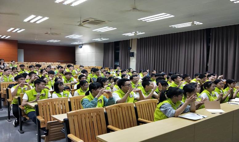 这次活动邀请了木棉花语幼儿园的一位老师为干事们培训,干事们先是观看一个由幼儿园老师精心制作的视频,视频中为干事们展示了幼儿园老师在学校的日常。从接孩子到喂孩子吃饭到去户外做早操再到上课等等很详细地展示了老师一整天细心地照顾孩子,尽管工作很辛苦但那些老师还是觉得和孩子在一起很开心,这种开心可以弥补他们一天的疲惫。视频让干事们深深地感受到了老师工作中的爱与责任。老师还分别讲解了不同年龄段孩子们的特点,使大家能更深入了解孩子。视频结束后老师也有教大家有趣的手语游戏跟大家互动,最后,干事们跟着老师学儿歌,体会孩子那种简单的快乐,至此培训也在欢笑中结束了。