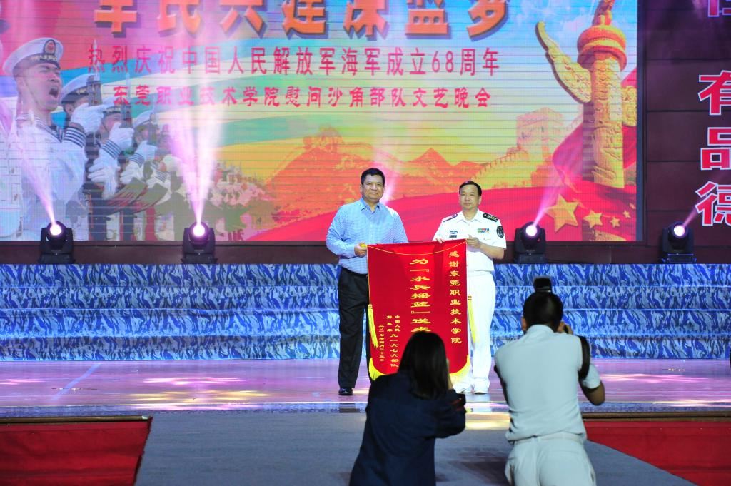 2017年4月23日晚19点30分,在中国人民解放军海军正式成立68周年之际,东莞职业技术学院慰问沙角部队“军民共建深蓝梦”文艺晚会在中国人民解放军沙角部队文化活动中心隆重举行。出席慰问晚会的我院领导有党委书记朱益民,以及宣传部部长杨洋、保卫处处长雷亚民、团委书记王博,以及东莞市双拥办、虎门边检站等领导和沙角部队全体官兵和基地家属观赏了本次晚会。