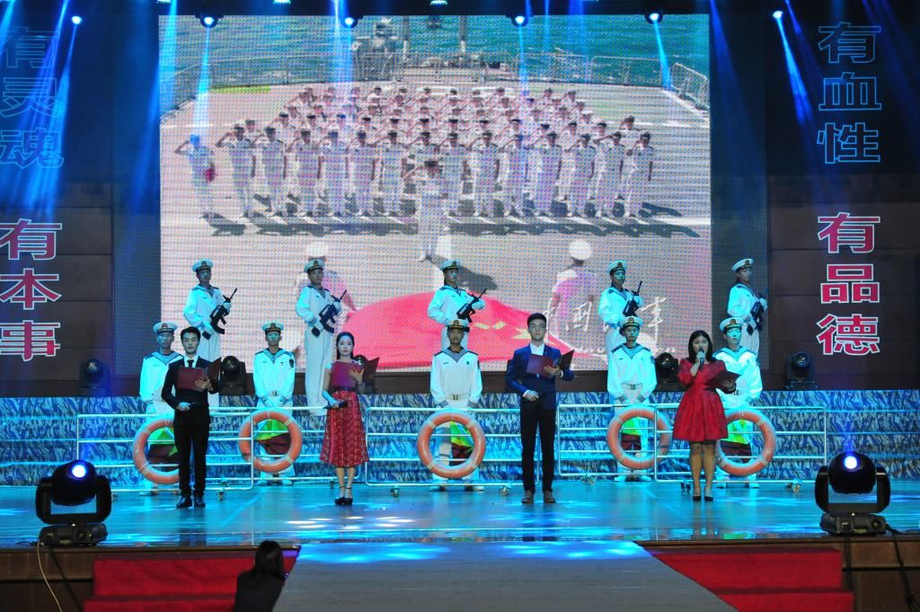 在晚会正式开始前,沙角部队政委向我院党委书记朱益民授予锦旗表示感谢。伴随着歌声,文艺晚会在雷亚林老师演唱《美丽的心情》中拉开帷幕。接着,诗歌朗诵《水兵之歌》表达了对军人们的赞扬与歌颂。惟妙惟肖的舞狮与刚劲有力的双节棍相结合,为大家带来《狮武盛宴》。紧接着,T台秀《青春绽放》一开场,现场掌声如鸣,高潮迭起。连菂老师手风琴重奏《西班牙舞曲》与《军歌连奏》,而蔡莉老师则献唱了一首《共和国的旗帜》以歌颂祖国。最后,晚会在各位领导与所有演员合影留念中落下帷幕。